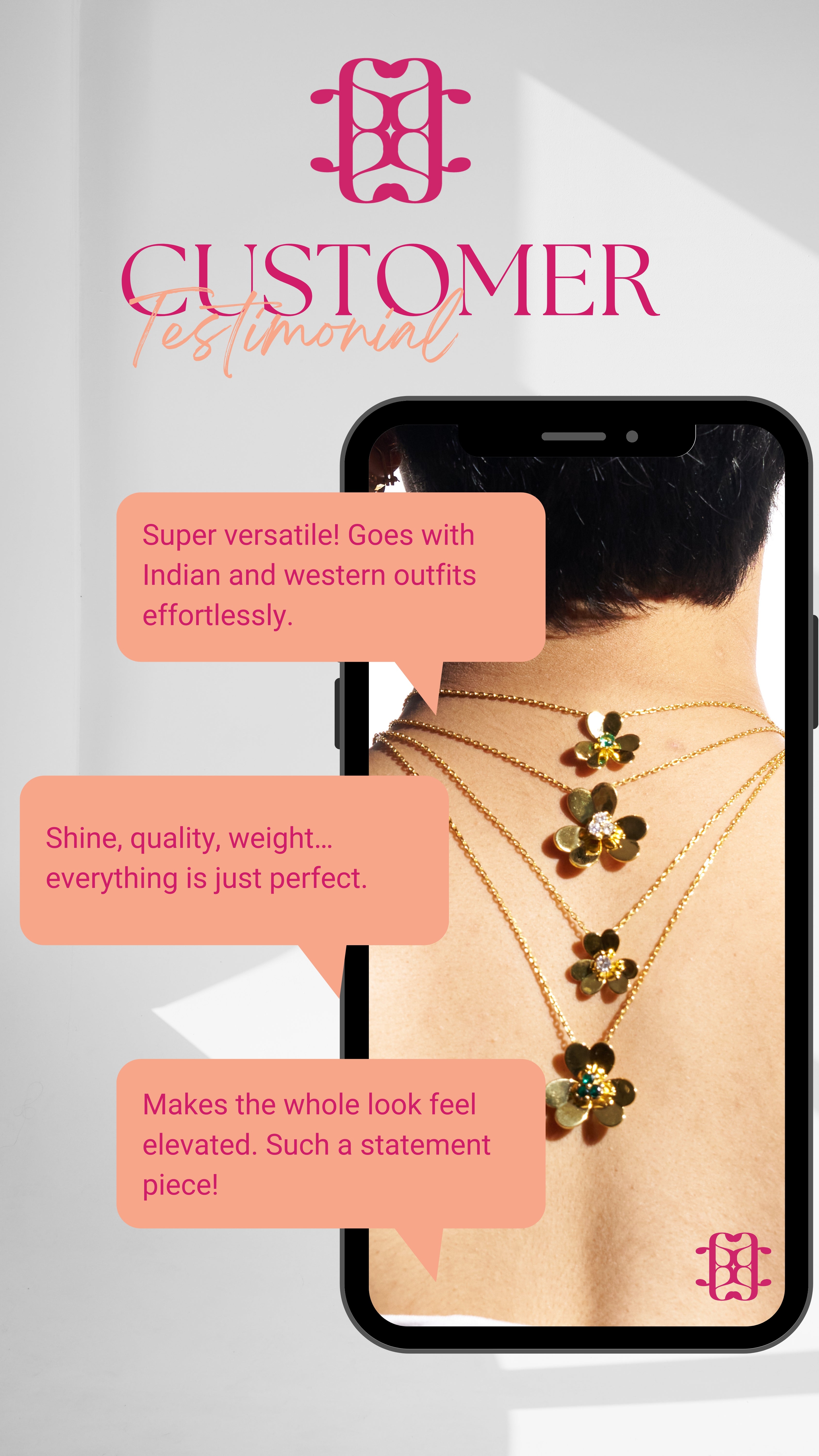 Strong, radiant, and unapologetically elegant, the Wild Bold Pendant captures the essence of fearless femininity. Its striking bloom commands attention while staying effortlessly refined, a piece made to shine wherever it goes.